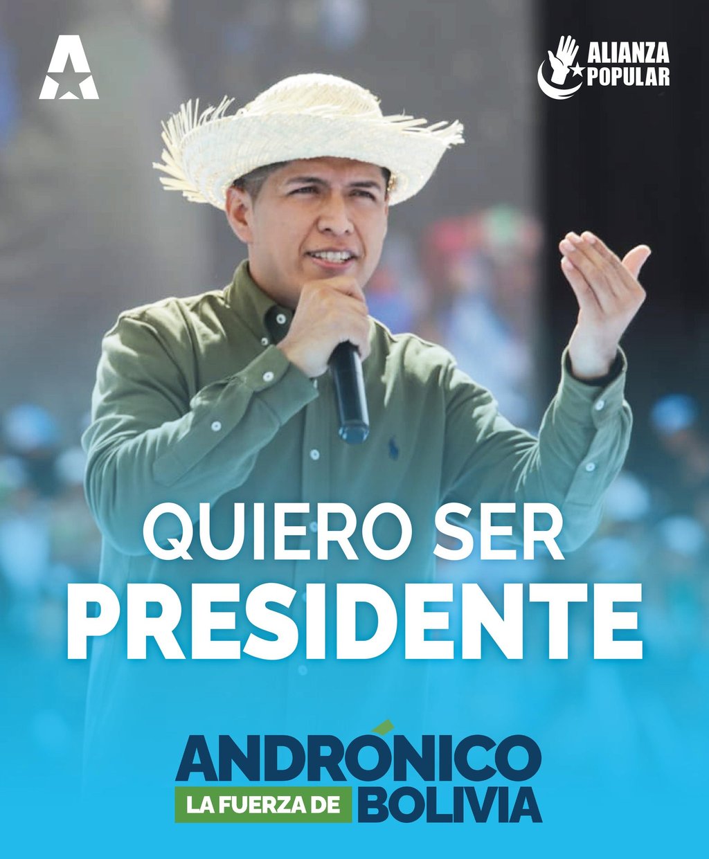 La Paz, Prensa AP, 28 de junio de 2025. – “Quiero ser Presidente de Bolivia”, de esta manera con convicción y firmeza, el candidato a la Presidencia, Andrónico Rodríguez lanzó oficialmente su proclamación a la presidencia por la Alianza Popular, con un mensaje cargado de reflexión, autocrítica y propuestas estructurales para enfrentar la crisis económica y política que vive el país.
